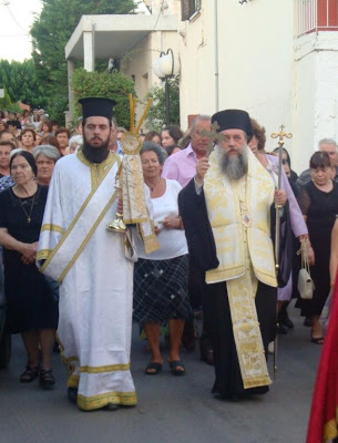 Luego Papa-Yianni con los comisionados de la iglesia fueron a Aigaleo, a la Iglesia de Santa Bárbara, y desde allí trajeron en automóvil el icono milagroso de la Santa hasta la intersección del pueblo.